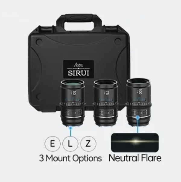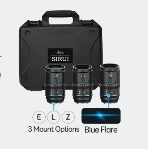 SIRUI ASTRA KIT 50MM + 75MM + 100MM T1.8 SONY E-MOUNT BLUE FLARE 1.33X FULL FRAME AUTO FOCUS ANAMORP