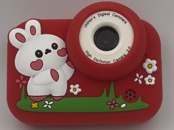 ASAKY KIDS PHOTO CAMERA DIGITAL BUBBLE MICRO SD 2"IPS HD SCREEN RED + COVER RABBIT