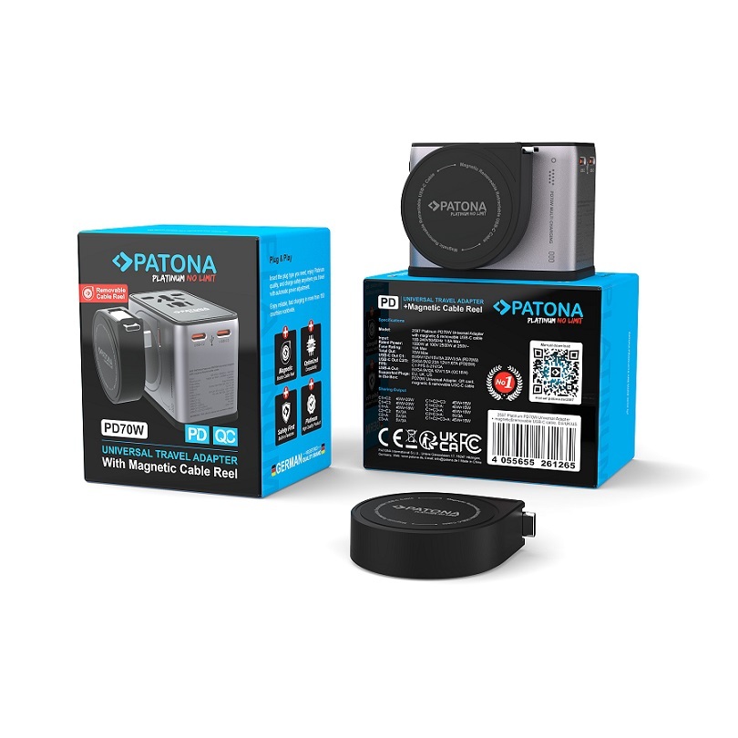 PATONA ADATTATORE DA VIAGGIO UNIVERSALE PLATINUM PD70W CON AVVOLGICAVO MAGNETICO 3X USB-C - 1X USB-A